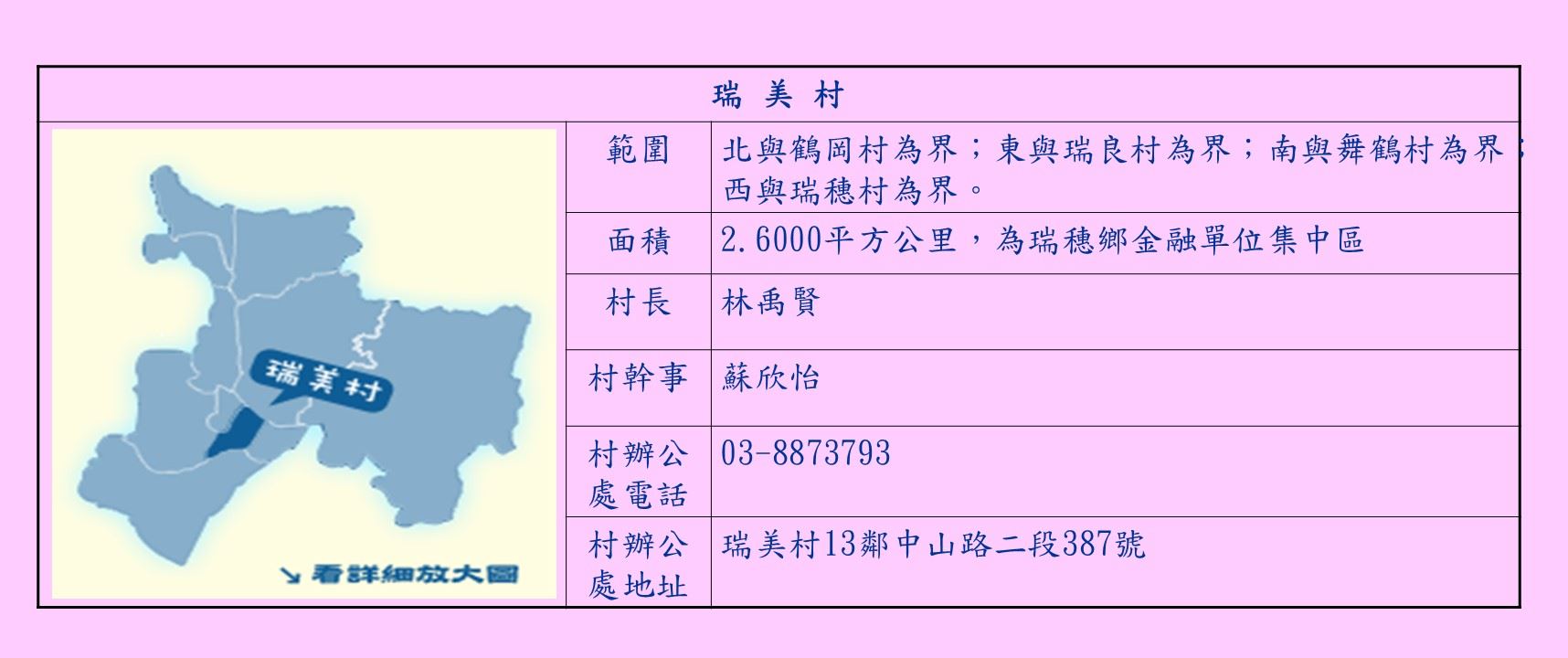 瑞穗鄉各村簡易疏散避難圖